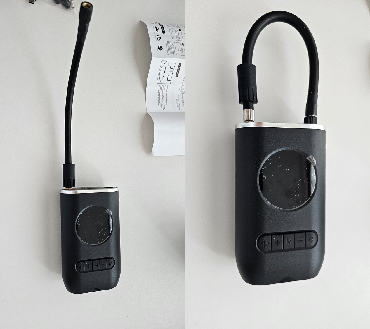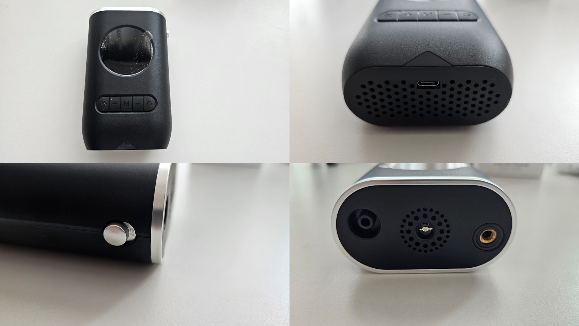 본체 구성을 보면 간단하다. 전면에는 조작스위치가 배치되어 있고 하단에 USB C타입 충전포트가 있다. 우측 측면에는 전원스위치가 있고 상단에는 펌프호스 연결부가 위치해 있다.