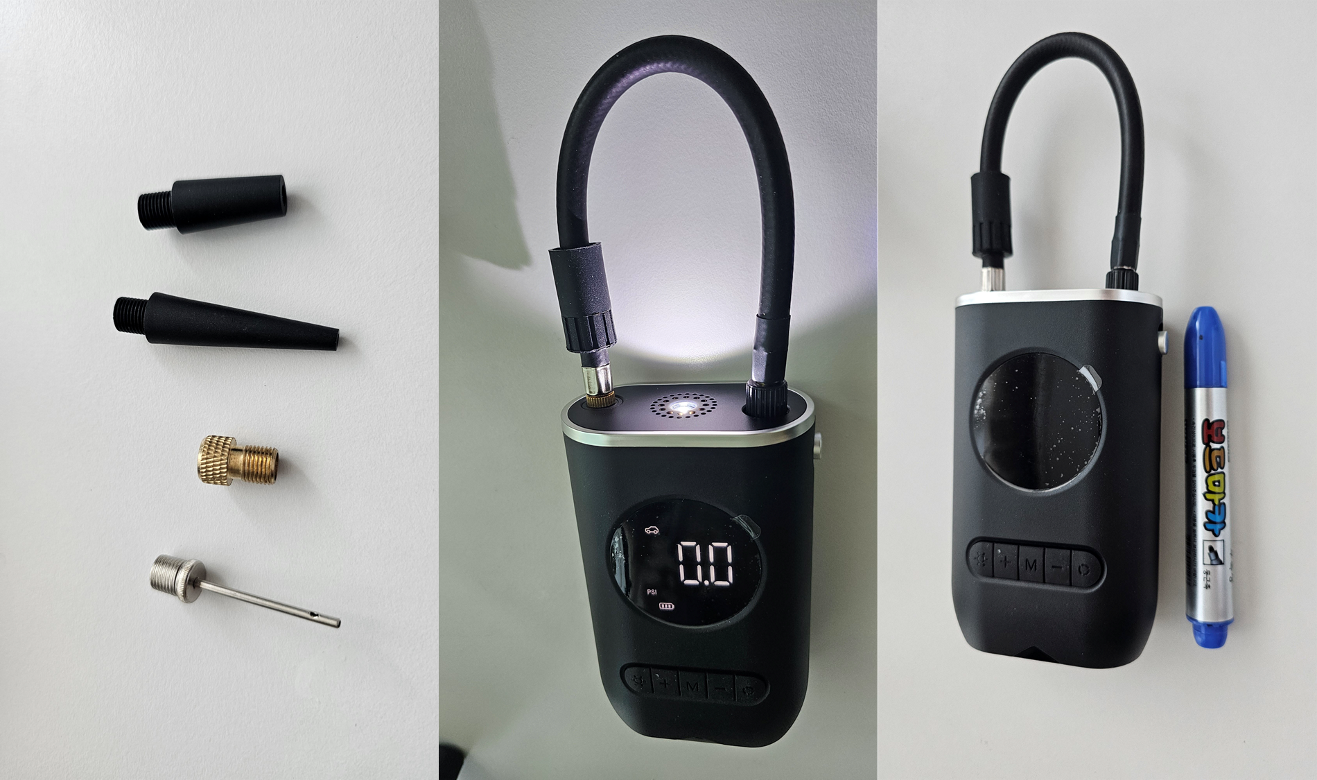 본체 상부에는 라이트기능도 있고 크기틑 보드마카 크기정도이고 노즐도 4가지 정도 제공된다.