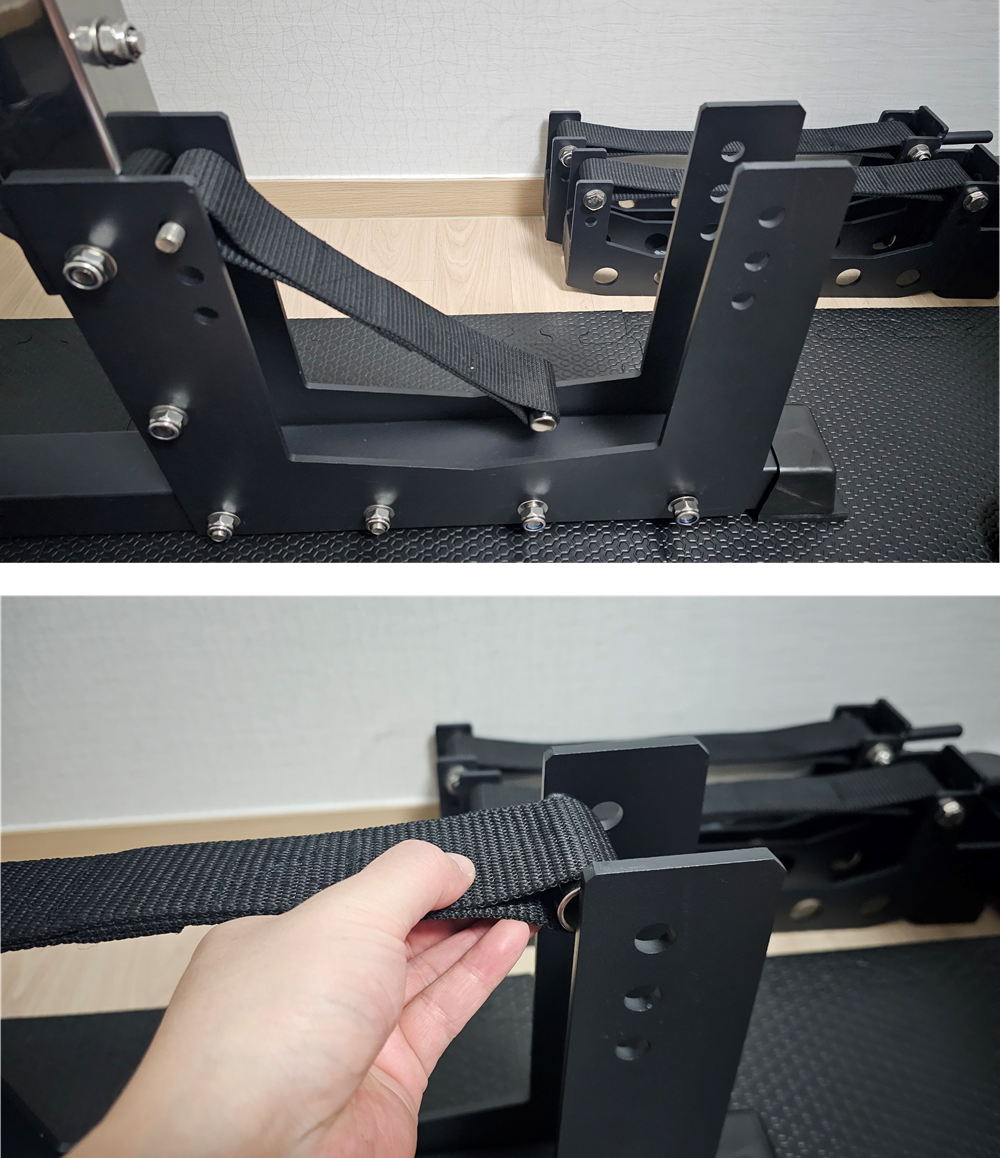 마지막으로 제일 힘들었던 게 있었다. 슬링데드랙 설치할 때인데 이게 슬링바 길이가 짧아서 끼우기가 엄청 힘들다. 진짜 온 힘을 다해서 간신히 끼우긴 했는데 찾아보니 동그란 브래킷을 빼고 볼트로 체결 후 바벨을 올려놓아 슬링바를 늘려주고 다시 설치하면 편하다고 한다. 이걸 몰라서 죽을 둥 싸면서 간신히 끼워 넣었다.