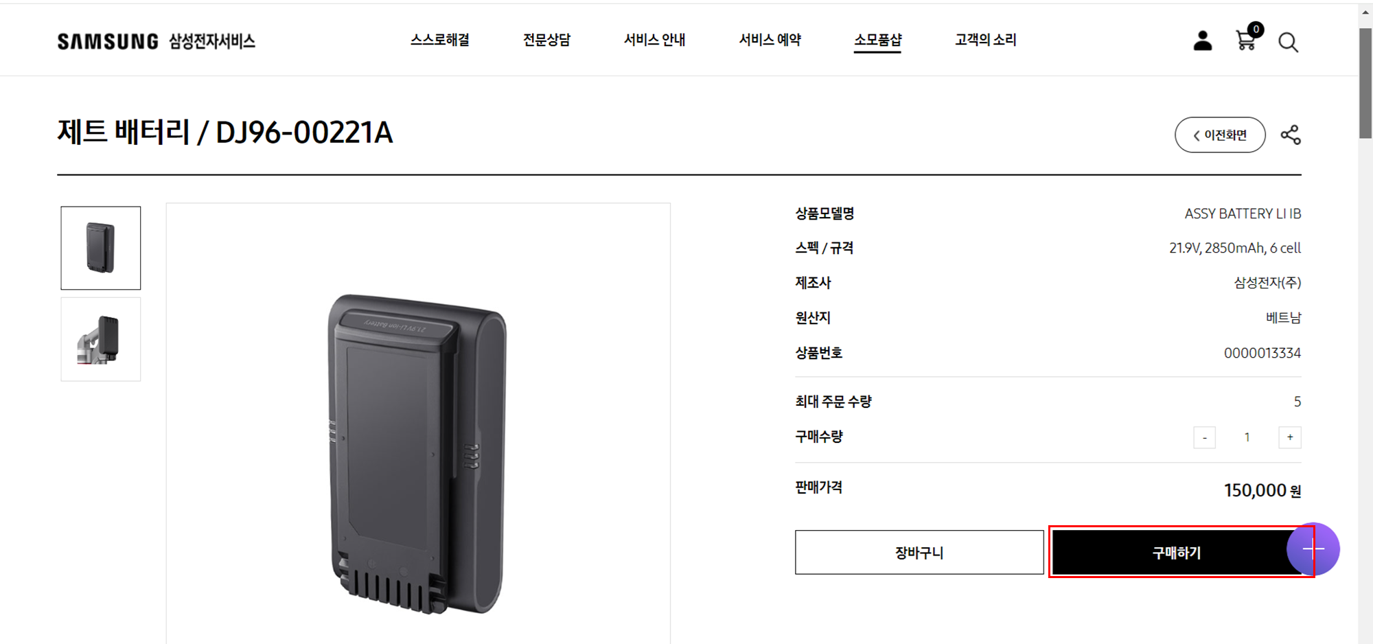 삼성 무선 청소기 배터리 구매 방법