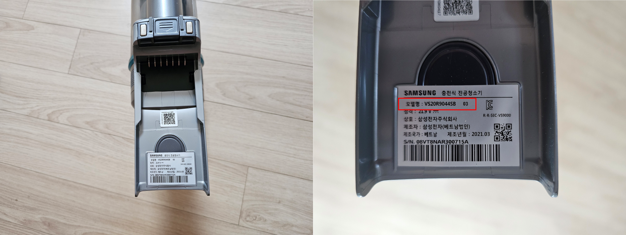 청소기 배터리를 분리하면 안쪽에 모델명을 확인할 수 있다.
